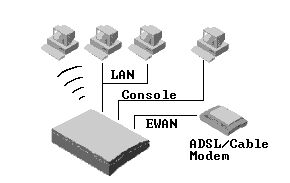 Ki kell nevezni egy konzol gépet, ezt külön kábellel hozzá kell csatlakoztatni a Routerhez. De ez az extra csatlakozás szerintem csak akkor szükséges, ha a konzol gép nincs rajta a LANon, ugyanis e nélkül is konfigurálható. (Ekkor egy külsõ modem csatlakoztatható a konzol vezetékre.)