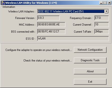 De talán a fennti képen látható diagnosztikai rész a leghasznosabb. Itt egy az elõbb említett vezeték nélküli Routerrel hoztam létre a kapcsolatot. A Router majdnem kétszer akkora teljesítménnyel ad, mint ez a kis kártya. Így pl. nagyobb távolságból simán elõfordult, hogy még 30%-os volt a jelszint és már nem jöttek vissza az elküldött csomagok.