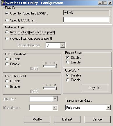 A telepítés rendkívül egyszerû volt. Az egyik ilyen rádiós csatoló egy ASUS A1300-es laptopban volt, a Windows 2000-es operációs rendszer felismerte az eszközt, ezek után csak meg kellett mutatni a floppy lemezen melléklet drivert. A fennit képen talán a legfontosabb pont a hálózat típusának megadása. Ad-hoc esetén hozhatjuk létre a Router nélküli hálózati kapcsolatot.