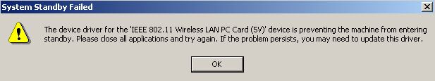 Eleinte le kellett küzdenem a fennti képen látható hibaüzenetet. Ezt a laptop és az asztali számítógép is produkálta. Arról, van szó, hogy ha a gép készenléti állapotba kerül, akkor a PCMCIA-os kártyával gondok adódnak. Végül úgy állítottam be a gépet, hogy ne kerülhessen készenléti állapotba...