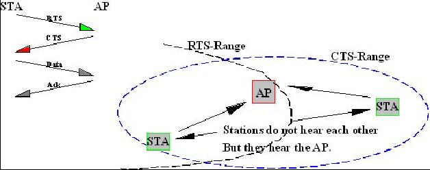 Elõfordulhat, hogy két rádiós eszköz már olyan távol van egymáshoz, hogy nem jön létra a kapcsolat. Ha pl. egy ilyen Router is beszáll a buliba, akkor, ha mindkettõ eléri ezt a képen "AP"-vel jelzett pontot, akkor létrejöhet a kommunikáció (ismételtem: az Access Ponint (AP) nem azonos a bemutatott Routerrel, a Router jóval bonyolultabb). Gondoljunk bele milyen jó lenne, ha a mobil DSM bázisállomásokhoz hasonlóan sok ilyen becsatlakozási pont lenne, így nem kellene a vezetékek kiépítésével veszõdni stb. és nagy területen megoldható a gépek összekapcsolása.