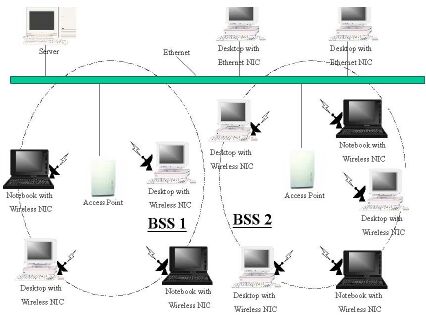 Vagyis vannak olyan gépek, melyek vezetékkel vannak összekötve és ezekhez bármelyik vezeték nélküli gép csatlakozhat és fordítva a Routeren keresztül, ez itt a fennti képen az Access Point. Az Access Point elvileg nem csak Router lehet!