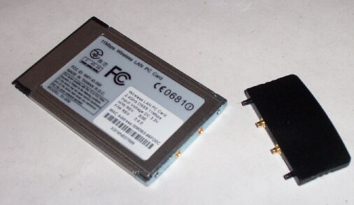 Hoppá, ebben is egy PCMCIA-os kártya lapul! Ez valószínûleg egy kicsit izmosabb, mint az elõbb bemutatott példány, ugyanis valamivel nagyobb adóteljesítménnyel rendelkezik. A másik lényeges eltérés az lenne, hogy ez a kártya 3.3 Voltos, míg az elõzõ 5 Voltos.