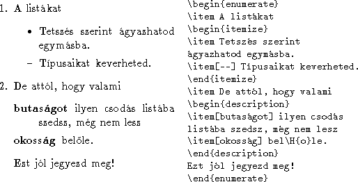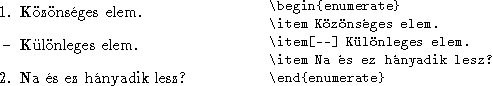 környezet ún. pontozott listát, az enumerate pedig számozott