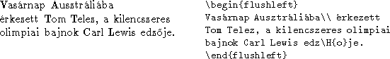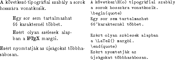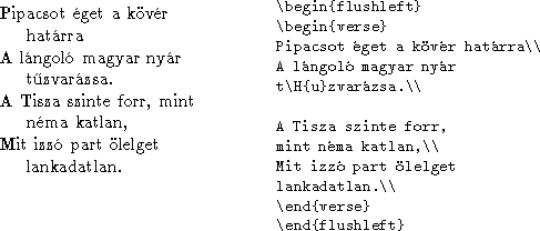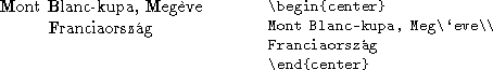 parancsot. A LaTeX a szöveg-et szó szerint fogja megformázni. Az
