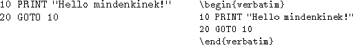 \begin{verbatim} és \end{verbatim} parancsok közé zárt szöveget a