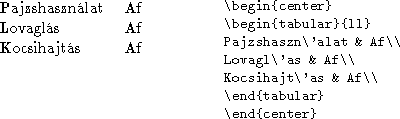 oszlop közé beszúrja a szöveg-et. A tabular oszlopainak