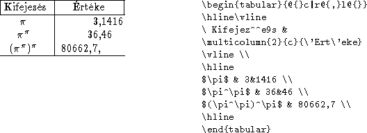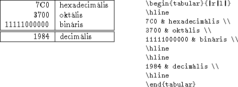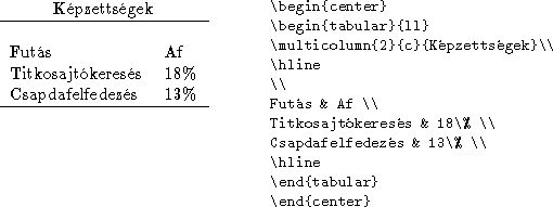 szélességét a LaTeX automatikusan állapítja meg. Az egyes oszlopok között