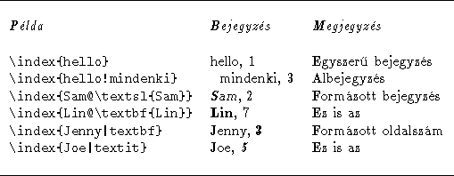 A könyvek nagyon jól használható része a tárgymutató. A LaTeX és a
