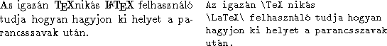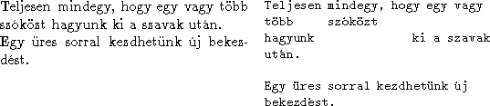 egyszerű szóközöket írnál, akkor a LaTeX ezeket csak egy szóköznek