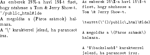 használhatjuk szövegeinkben, hiszen a LaTeX azt egy parancs kezdetének