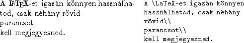 A példában három parancs található. A \LaTeX parancsszó, és a \\