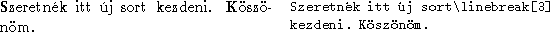 \linebreak parancs pedig sortörést kér. Utóbbinak meg lehet adni