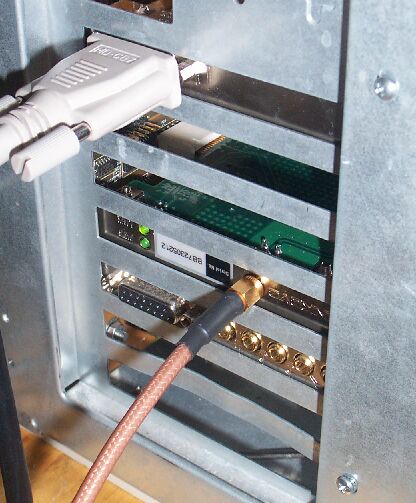 "Szerencsére" a PCI-os kártyának olyan úgynevezett SMA csatlakozója van, mit még az egyetem Mikrohullámú Híradástechnika Tanszékén sem láttak soha. Hasonlót már igen, így egyáltalán nem volt könnyű ehhez csatlakozót szerezni (a probléma az, hogy a középső tüske ugyanazon a darabon volt, amin a menet... normál esetben, azon a darabon van a menet, amiben a lyuk van....)
