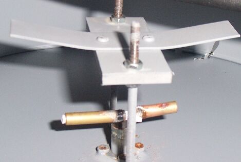 Az antennában ez lapul. A réz csövecske egy kis dipól. Felette egy szürkére festett műanyag lap lapul, amit két gém csavar tart. Erre a lapra szárnyszerűen egy alumínium lap került, ez az antenna reflektor része. A dolog úgy működik, hogy a dipól által kisugárzott jelent az alumínium lap egy nagyobb felületen szétteríti. Ez a nagyobb felület egy fém lap, mai ezen a frekvencián úgy működik, mint egy tükör.