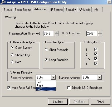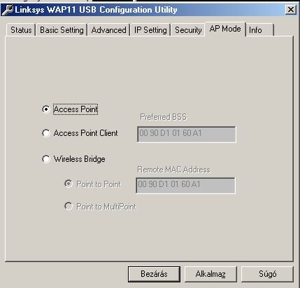 Ha egy WAP11 (ez egy Access Point) egy másik Access Pointhoz szeretne csatlakozni, akkor az előbbit át kell állítani kliens (Client) módba, mert egy összefüggő hálózatban csak egy Access Point lehet.