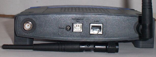 Jópofa ez a Linksys Access Point a két antennával, a hátulja még izgalmasabb: