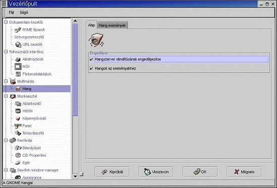 Ahhoz, hogy az ablakkezelő hangokat adjon ki a különböző ablak-, menü- és egérműveletekkor, engedélyezni kell a hanghasználatot.