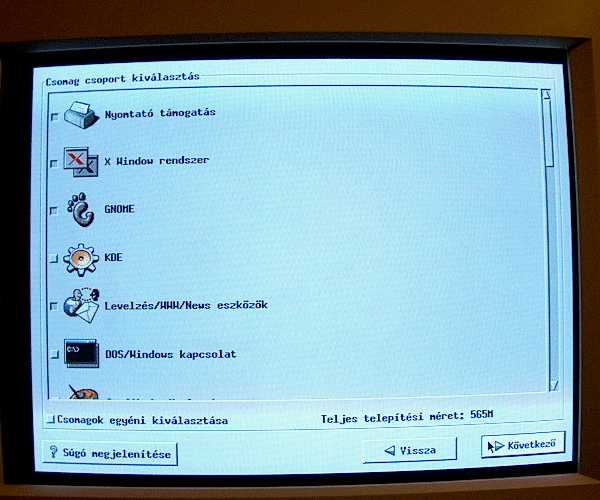 A következő képernyőn meg kell adni, hogy miket szeretnék telepíteni. Ha alul kijelölöd a "Csomagok egyéni kiválasztása" -t, egy újabb ablakot fogsz kapni, amiben részletesebben látod a telepíthető csomagokat, programokat.