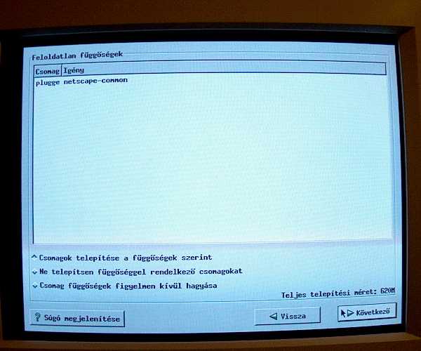 Létezhet olyan, hogy egy programnak előfeltétele egy másik program (vagy nevezzük inkább csomagnak) megléte, ezt függőségnek nevezzük. A telepítő nem bírálja kapásból felül az embert, de jelzi, hogy van függőség, és ránk bízza a döntést. Nem minden esetben van ilyen, de ha van, érdemes telepíteni azt is, amit külön nem jelöltünk ki de egy programnak szüksége lehet rá.