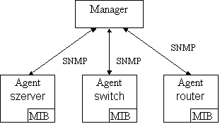 SNMP három fő alkotóelemből áll: menedzser (Manager), kiszolgáló