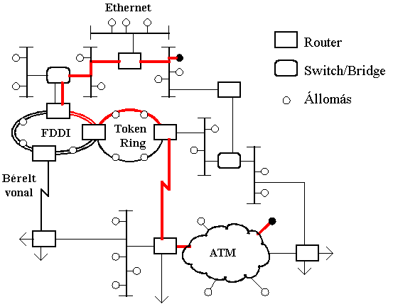 Egy ilyen csomagkapcsolt hálózatot router-ekkel összekapcsolt link-ek halmazának tekintünk, ahol a link-en belüli kommunikáció kizárólag a link-en keresztül, a hálózati protokollt nem érintô módon, linkspecifikusan zajlik. A link-ek közötti kommunikáció viszont a router-ek segítségével a 3. rétegben történik. A route-olás szempontjából egy több szegmensbôl álló Ethernet hálózat egyetlen link, hiszen benne teljes az Ethernet konnektivitás és a router-eknek nem is kell tudniuk arról, hogy mindez hogyan valósul meg.
