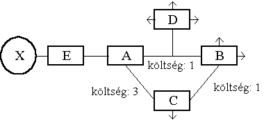 Ezzel azonban csak 2 router között akadályozzuk meg a végtelenig számolást, egy körben nem. A fenti ábrán C a B-n keresztül küldi a csomagokat X-be, mert az az út olcsóbb, mint a közvetlen A-ba vivô. Az elôbbi esetet tekintve, ha A 5 költségû útja megváltozik végtelenre, akkor még mielôtt a B ezt megtudná és közölhetné a C-vel, C küldhet egy üzenetet A-ba, hogy ismer egy 7 költségû utat X-be. Erre A átírja táblázatában 10-re az X-hez tartozó bejegyzést és C fele irányítja csomagjait. Mikor B errôl A-tól tudomást szerez, ô továbbra is A fele küldi csomagjait, de útjának költségét 11-re állítja. Ezt C-nek hirdetve C költsége 12-re módosul és a kör bezárult, a számolás nem két router között, hanem körben, de megindult a végtelen felé és igazából X-be senki nem képes eljuttatni csomagokat. A hurokba került csomagok pedig ismét torlódást okoznak. A torlódásban pedig a routing protokollok üzeneteit is nehezebb átadni, ami a számolást lassítja.