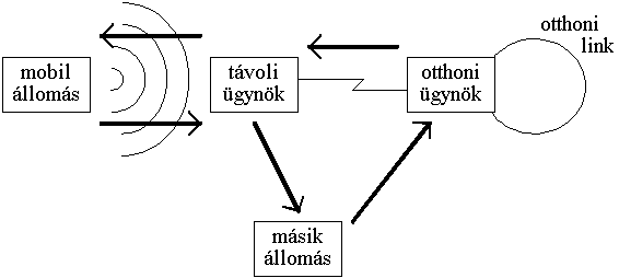 A mobil állomásnak létezik egy otthoni link-je, melyre kapcsolódva nem számít mobil állomásnak. Címe is ennek a link-nek prefixébôl áll. Ezen a link-en az egyik router tölti be a mobil állomás otthoni ügynökének szerepét. Ha a mobil állomás eltávozik otthoni link-jérôl és egy másik link-re csatlakozik, akkor ott keres magának egy távoli ügynököt, aki célszerûen azon a link-en egy router. Ennél bejelentkezik, közölve vele, hogy mi az ô IP címe és ki az ô otthoni ügynöke. Bejelentkezését a távoli ügynök továbbítja az otthoni ügynök felé, aki a mobil állomás által szolgáltatott hitelesítô információk alapján eldönti, hogy valóban az-e akinek mondja magát. Ha igen, megerôsítô üzenetet küld vissza. A fenti folyamatot regisztrációnak hívjuk. A regisztráció során tehát a mobil állomás közli új tartózkodási helyét az otthoni ügynökkel. Az otthoni ügynök ezután minden a mobil állomásnak küldött csomagot elkap, becsomagolja egy másik IP csomagba, elküldi az távoli ügynöknek, aki kicsomagolja és átadja a mobil állomásnak.
