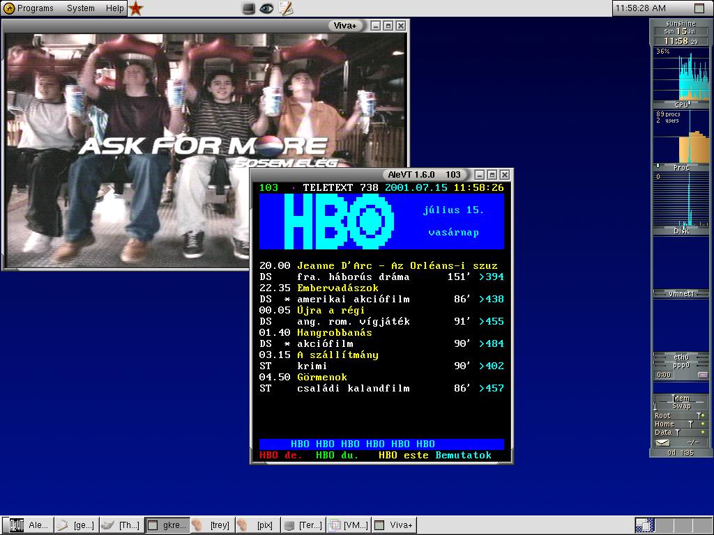 Egy az xawtv -hez hasonló GNOME -os tvgrabber és beépített teletext funkció. Ígéretes, kisebb bosszantó hibákkal. Érdemes kipróbálni.