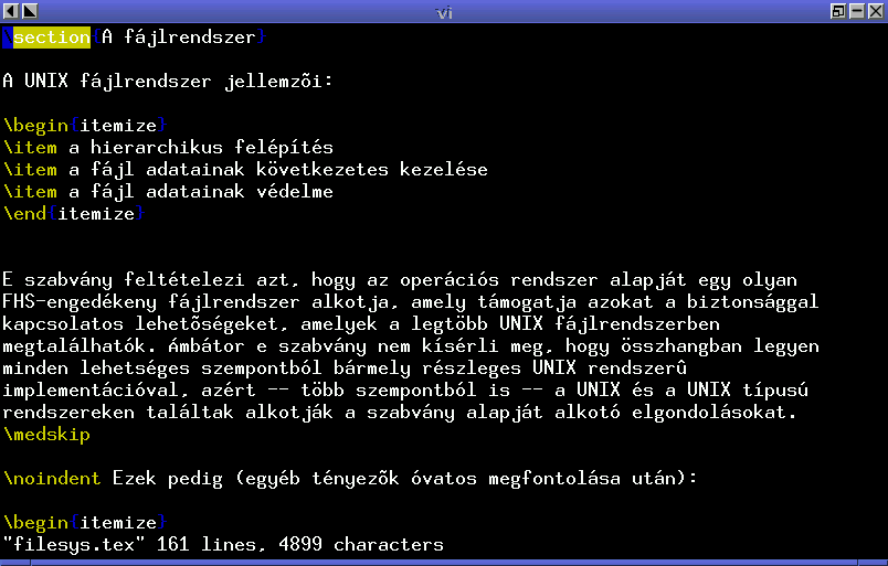 :xparancsot (ekkor mentjük a dokumentumot a módosításokkal együtt és kilépünk a programból). Amennyiben megijedtünk, hogy esetleg valami fontos dolgot is megsemmísítettünk a módosítás alatt, akkor használjuk a