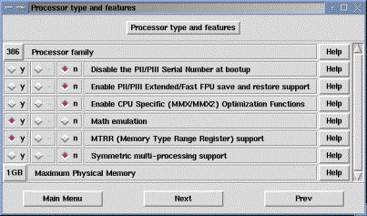 · Enable PII/PIII Extended/Fast FPU save and restore support – A PII és PIII processzorok gyors FPU támogatása célszerű, válasszuk az igent „y”.