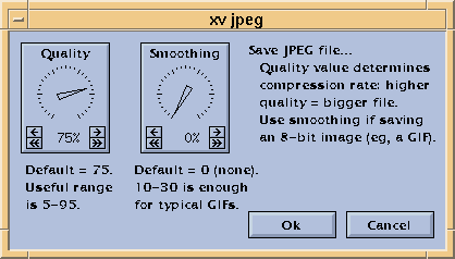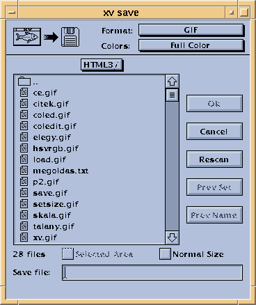 Itt be lehet állítani a képélességet meg hogy mennyire tömörítse a képet. Én nem szoktam ezeket állítani, mert minek. Élesebb kép=nagyobb file. Lehet próbálgatni!. Érdekes hatást érhetsz el, ha X11 Bitmap formátumban mented el, majd újra betöltöd. Ha igen kicsiny képet mentesz el, akkor a Normal Size gombra kattints. Az xv az ablak legkisebb széleségénél keskenyebb képet torzít, hogy ne legyen keskenyebb, és kitöltse az ablakot. Ha nem intézkedsz, ilyen formában menti el.