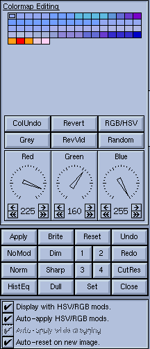 Kedvenc számítógépünk egyszerűsít: egy képet nem úgy tárol, hogy minden hupilila pixelhez (=képpont) megjegyzi, hogy hupilila, hanem megjegyzi, hogy a hupilila a 43-as szín, és ezentúl minden hupilila pixelhez csak ezt a számot jegyzi fel. Azt az információt, hogy a hupilila a 43-as, a rózsaszín a 23-as, a Colormap nevű dologban tárolja. Ezt tudjuk mi most piszkálni.