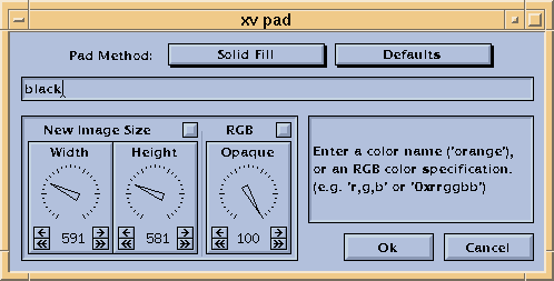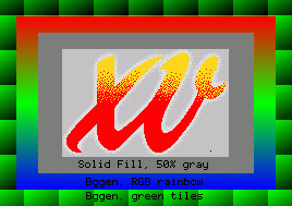 A Solid Fill gombbal állíthatod, mit tegyen a háttérbe. Solid Fill egy sima szín, Run 'bggen' valami átmenet, kockák, szivárvány, Load Image egy másik képet tesz a háttérbe.